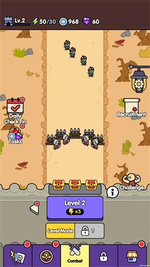 这款游戏的玩法相当简单,玩家无需进行复杂操作,核心任务就是点击不同的小兵来召唤它们对抗敌人。在战斗中,通过消灭各类敌人获取经验值提升等级,还能挑选不同的强化效果来增强小兵的战力。你需要击退一波又一波的敌人以完成任务,在不断变强的过程中开启全新的冒险体验。