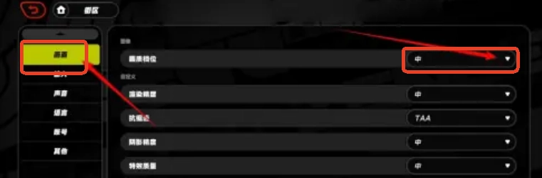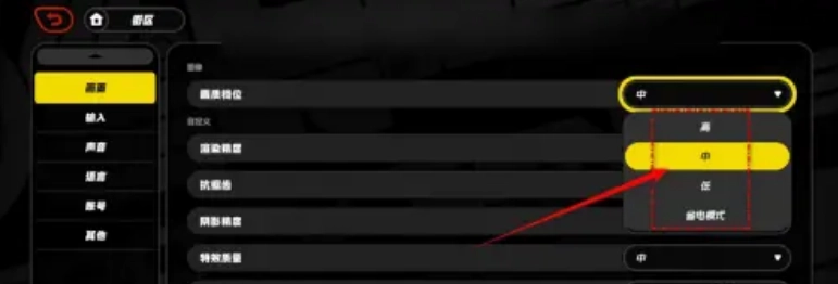 3、点击画质档位旁的选择栏,可根据实际需求将画质切换为高、中、低不同档位。