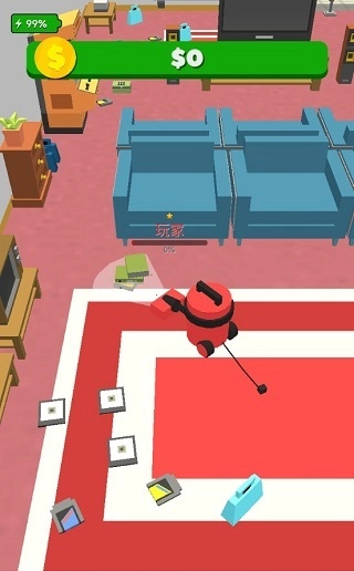 游戏画面采用卡通风格设计,整体色彩鲜明活泼,一眼望去便让人产生想玩的冲动。玩法方面也十分简单:游戏开始后,你需要操控一台吸尘器,让它疯狂吸入周围的各类物体。当这些物体被吸进吸尘器内部后,吸尘器的体积会随之增大,吸入物体的速度也会变快。若想快速让吸尘器“长大”,就需要把周围所有物品都疯狂吸入。