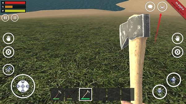2、移动到树的附近后,点击右侧带有三个同心圆标识的按钮来执行砍伐操作。