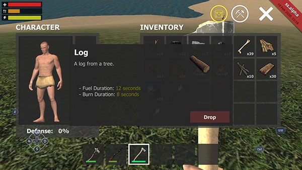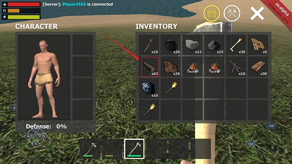 6、在INVENTORY的方框里能看到木材图标,此处的数字代表已搜集到的木材数量。
