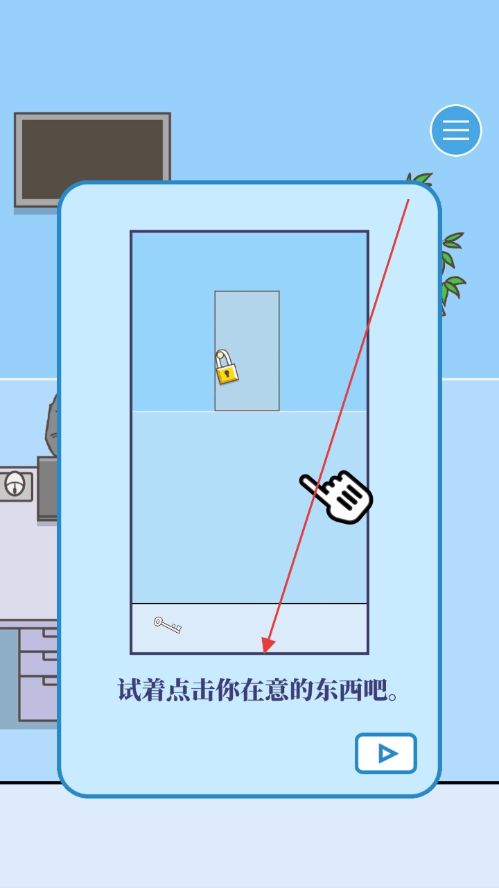 2、在关卡场景中,留意锁着的门、钥匙这类元素,通过点击互动来收集道具,试着破除出门的障碍。