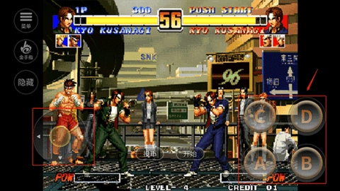 6、游戏里玩家得同时操控三个角色展开格斗,哪一方先把对方的三个英雄都击败,哪一方就能获胜。格斗开启后,可利用右侧的ABCD各招式按键来攻击对手。
