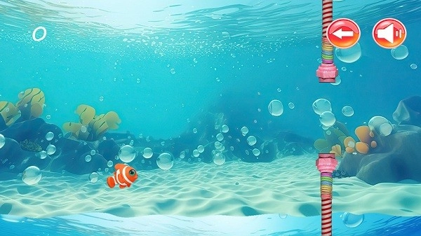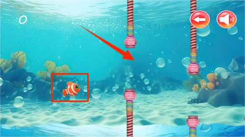 3、通过向上滑动屏幕来操控小海鱼跳跃,灵活躲避障碍,若能连续成功穿越障碍物,还可触发加速效果,助力小鱼游得更远。