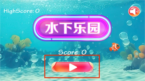 1、开启游戏后,点击屏幕下方不停闪烁的三角图标,就能进入海底冒险世界。在蔚蓝的背景里,有各种各样的彩色小鱼游动着,处处都充满了浓郁的海洋气息。