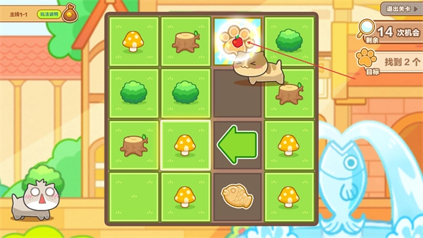 4、继续移动猫咪,收集剩余目标物品,完成关卡任务,推进流程。