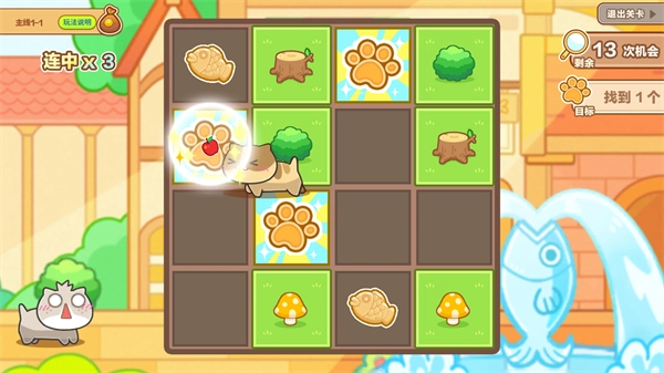 3、操控猫咪移动,收集目标物品,减少剩余任务量,积累连中次数。