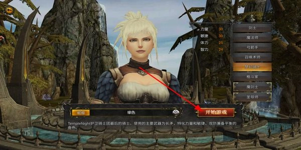 1、新手开局选择心仪职业并设置专属昵称后,点击开始游戏按钮,开启专属于你的勇者大陆冒险旅程。