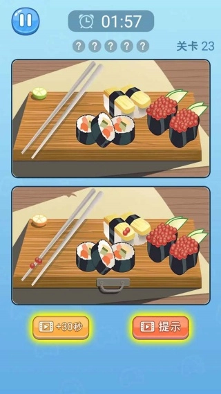 3、遇到瓶颈时使用提示道具,可高亮随机差异点或冻结倒计时,为找出剩余不同提供助力。