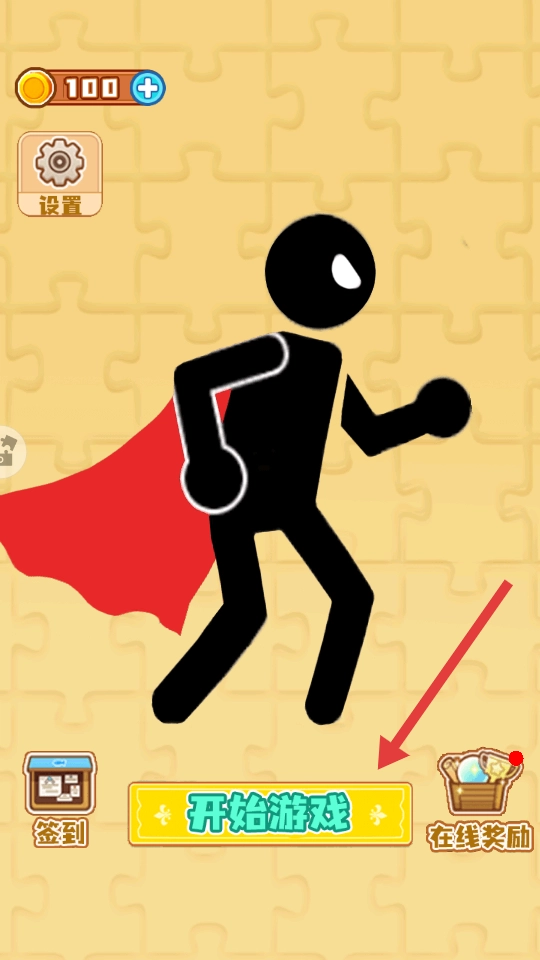 1、进入游戏主界面,点击【开始游戏】按钮,开启游戏之旅,可留意【签到】和【在线奖励】获取额外福利。