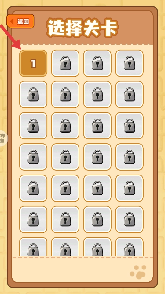 3、进入【选择关卡】界面,点击已解锁的【1】号关卡,正式开始游戏挑战,逐步熟悉游戏规则与操作。