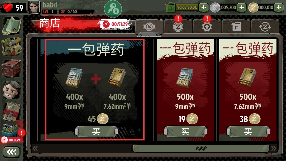 2、进入商店后,点击【买】进行购买“一包弹药”,提升战斗能力。