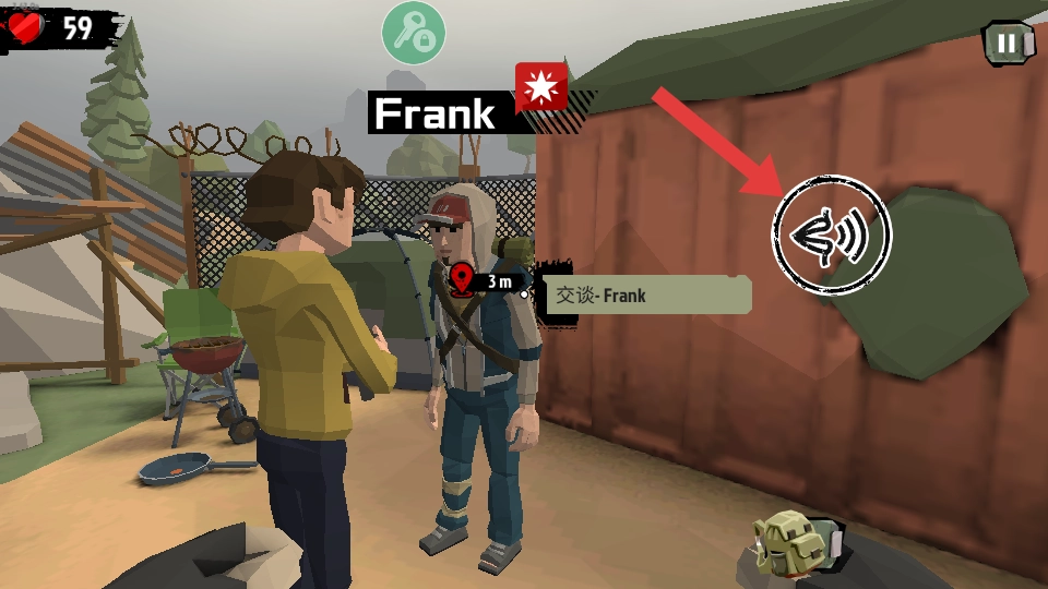3、购买完物资后,找到场景中的NPC(Frank),点击【交谈】按钮,接受任务。