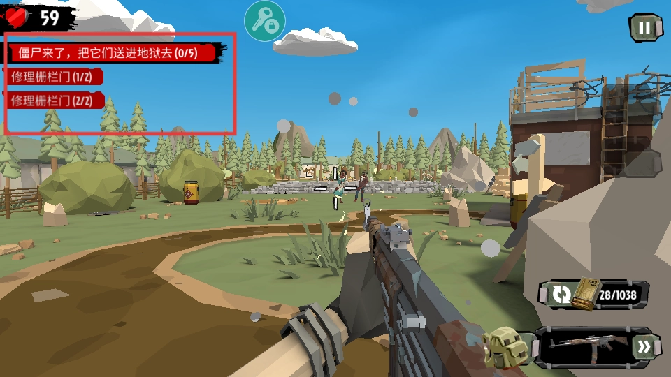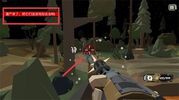 3、接取【僵尸来了-把它们送进地狱去(0/9)】任务,瞄准来袭僵尸开火,优先攻击靠近的目标。