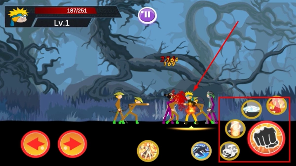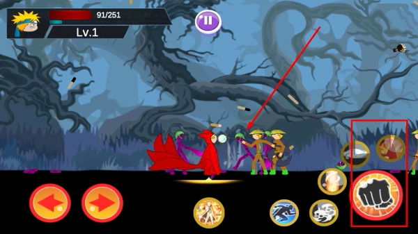 2、进入战斗后通过左右方向按钮控制角色移动,同时观察右侧技能图标,选择合适时机释放技能攻击敌人。