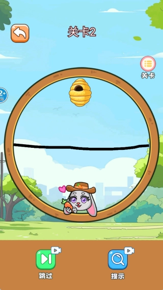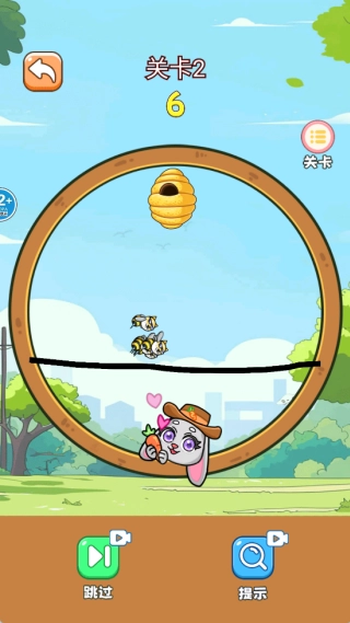 3、仔细观察场景中的结构,确定兔子和蜜蜂的位置,通过合理的画线来完成关卡任务。