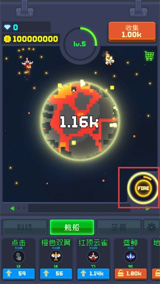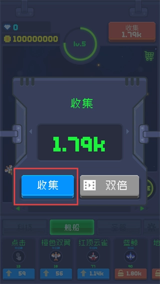 2、点击收集按钮获取资源,积累起来的资源能够用来给舰船升级,或者解锁新的战斗单位。
