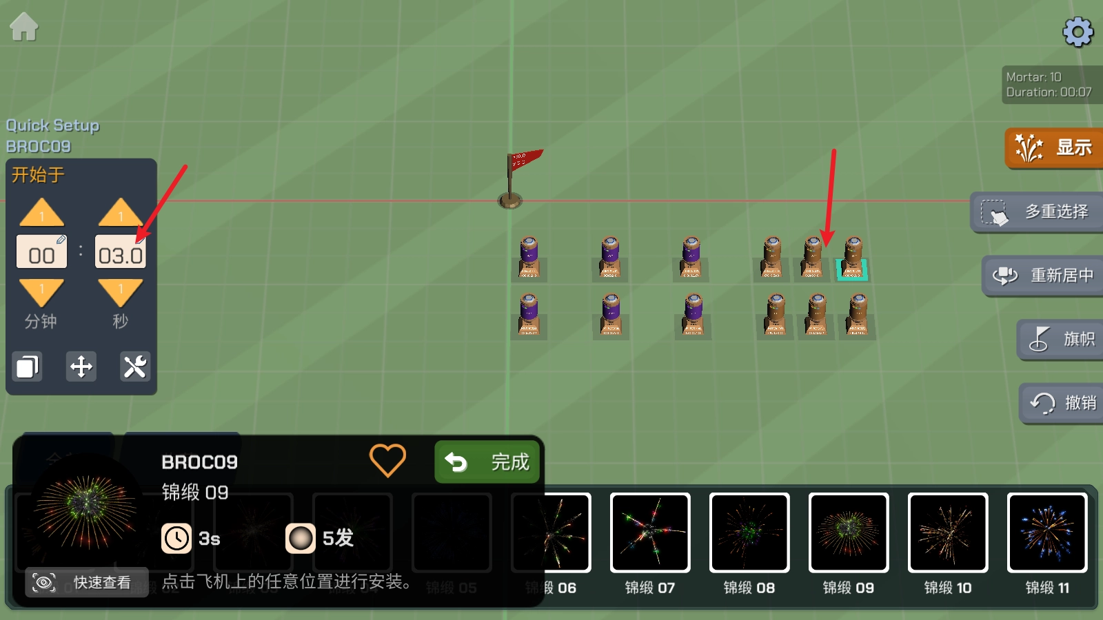 3、然后点击地图即可将对应的烟花放置,然后设置一下它燃放的时间