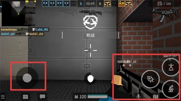 2、在战斗过程中,可借助左侧摇杆来操控角色移动,利用右侧按键释放武器和技能,在“枪战”模式里和其他玩家展开对战。