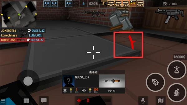 3、战斗时可拾取场景中的武器(如PP刀),提升输出能力,同时留意敌方位置,精准攻击目标。