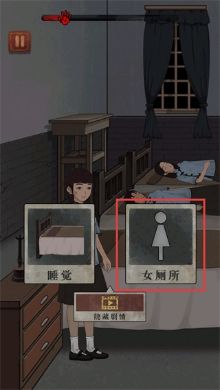 3、在宿舍场景中,选择【女厕所】选项而非【睡觉】,可触发隐藏剧情相关的关键事件,推动故事发展。