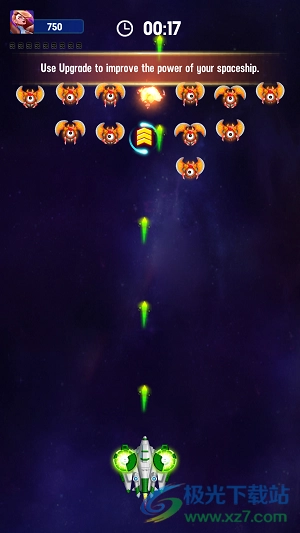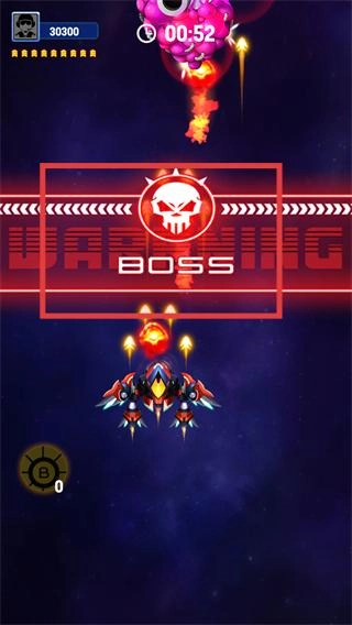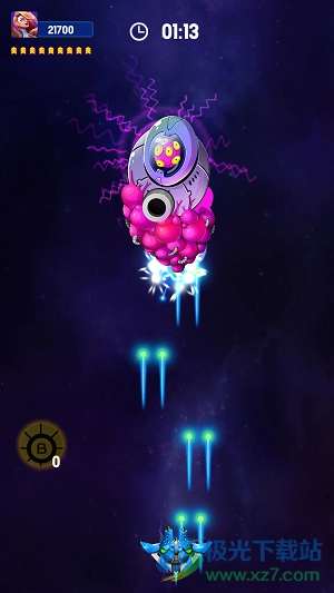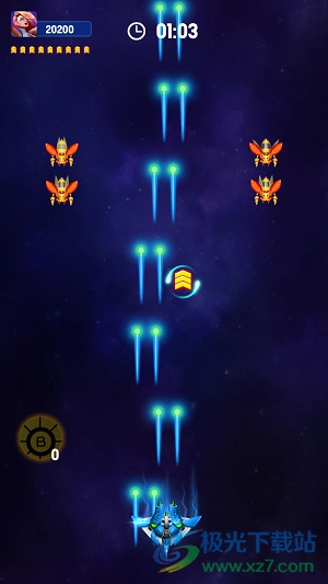 2、长按你的飞机进行操控,以此来控制战机上下左右移动,避开敌人的攻击。