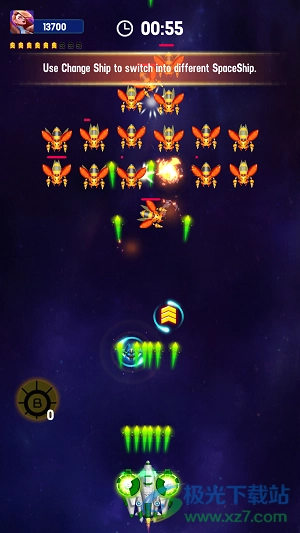 4、拾取之后你的战机,不论是子弹的威力还是战机的外观都会发生很大的变化。