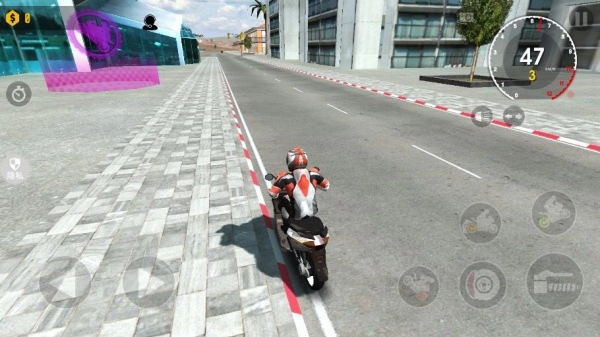 2、操控摩托车在城市公路、空中赛道等多样地形中冲刺,随时调整视角,保持行驶方向与速度平衡。