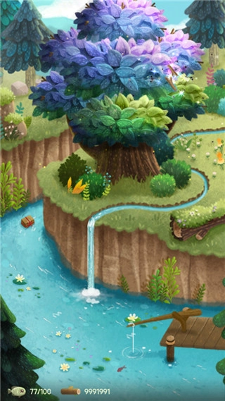 游戏里设有一处池塘可供玩家体验垂钓,捕获的小鱼能用来招待前来造访的猫咪们。