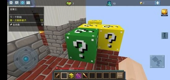 在游戏里,玩家需要打破各色幸运方块来获取不同装备与道具,巧妙运用这些物品消灭更多敌人。到了后期,击败敌人数量最多的玩家将变身为龙骑士,能骑乘飞龙大幅提升自身实力!