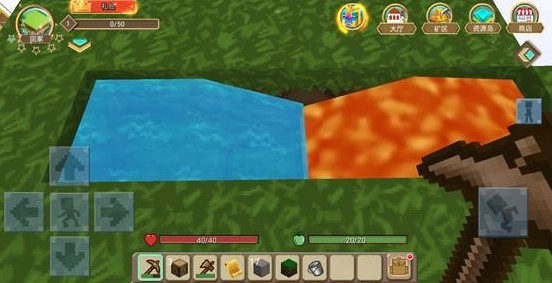 我们可以先按图示挖出几个坑洞,其中一侧的坑用于盛装液体水,另一侧则用来容纳岩浆;需要特别注意的是,在盛水侧的第二个方格位置,要向下再挖掘两层土壤,这样就能形成一个具有高度差的阶梯结构,让水能够顺着这个斜坡自然向下流淌。