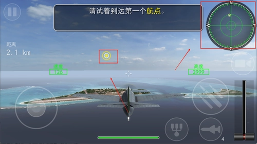 2、依据任务要求制定飞行计划,查看地图上的标记点,依照导航指引完成空中转向和高度调整。