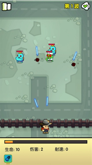 在游戏界面底部区域,玩家能清晰查看自身当前的生命值、攻击伤害数值以及武器射击频率;当玩家选用与当前所持相同类型的武器时,对应的游戏技能将自动提升等级。