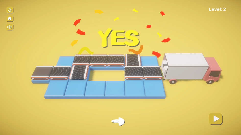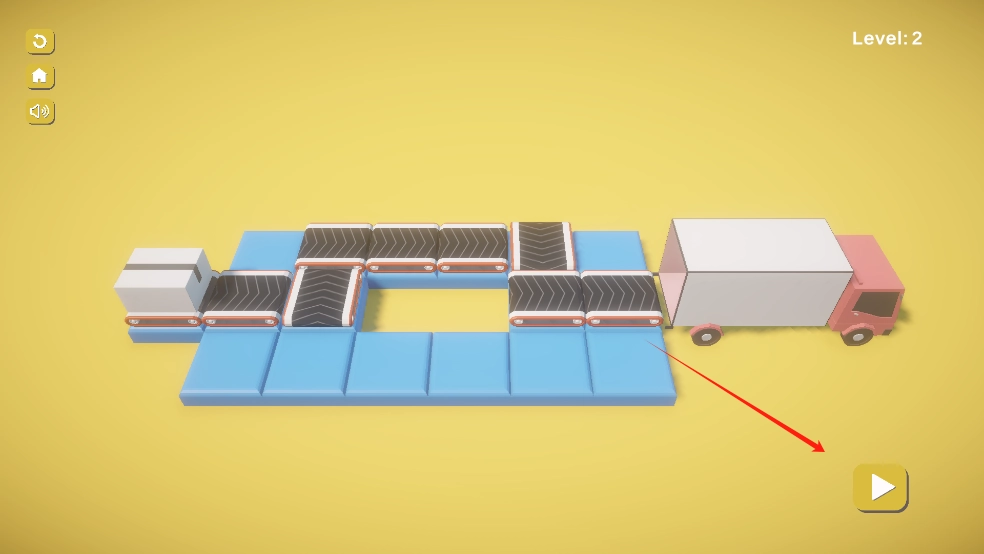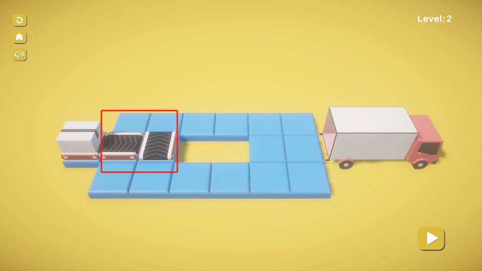 进入游戏后,玩家需合理布置传送带,把货物运送至货车上。