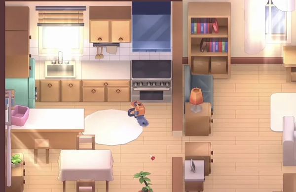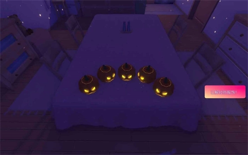 玩家得在厨房区域和打瞌睡的米塔一块儿玩五个南瓜头小游戏,把所有南瓜头都点亮,完成这个任务就能解锁万圣节装扮了。