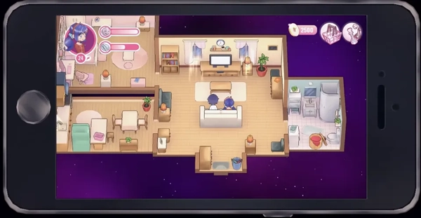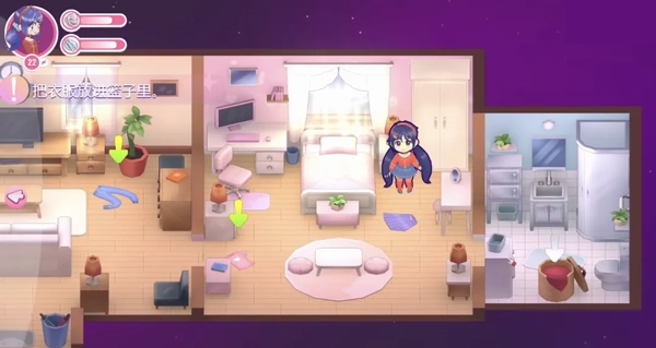 一个梳着双马尾、笑容甜美的3D小人美少女兴高采烈地向你打招呼,接着露出腼腆的笑容,询问你能否帮她整理房间呢?