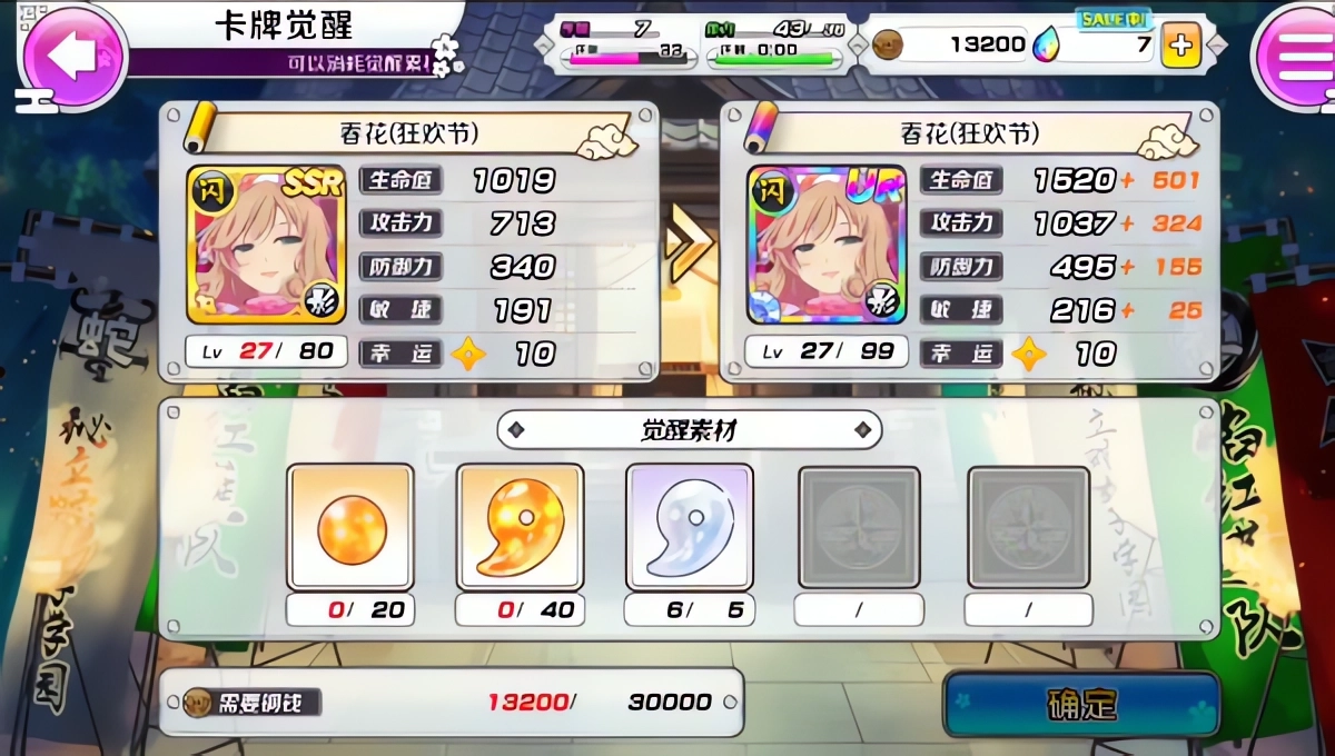 7、玩家能够通过收集觉醒材料与各类资源来提升卡牌等级,所有卡牌均有机会成长至UR级别,并且UR级别的卡牌会超越SSR级别,成为实力最强的卡牌。