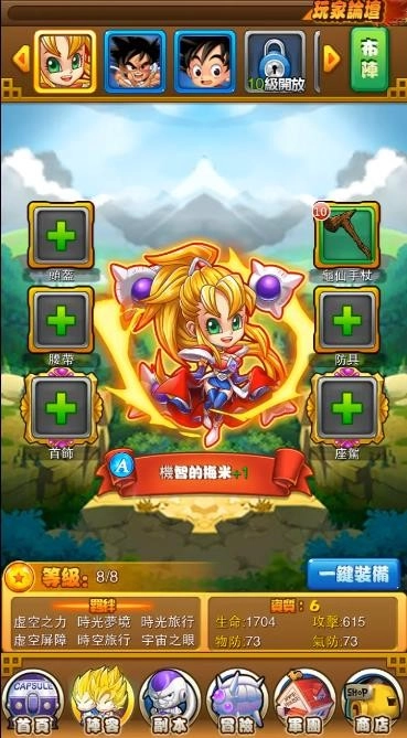 1、可以体验独特的卡牌与放置养成玩法,还能搭配众多赛亚人战士一同展开冒险。