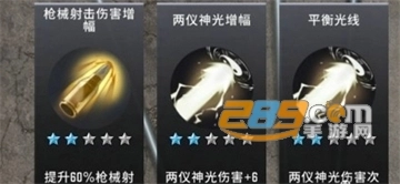 3两仪神光伤害+6提升60%枪械射不过在选择的时候技能下面都是有星级的表示,是显示了当玩家技能的等级,等级越高伤害就越高,所以大家可以专注提升一个技能,其他的技能可以后续补上。技能也是会根据玩家们英雄的替换、装备的替换而变化,所以大家在进入关卡前就要合理的搭配英雄和武器装备才能够在游戏里更好的搭配技能进行对战。