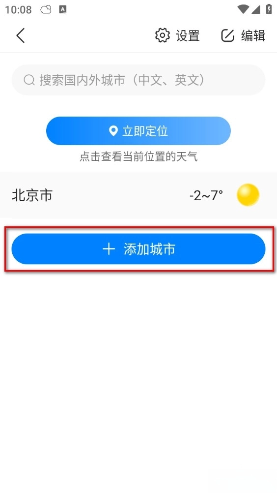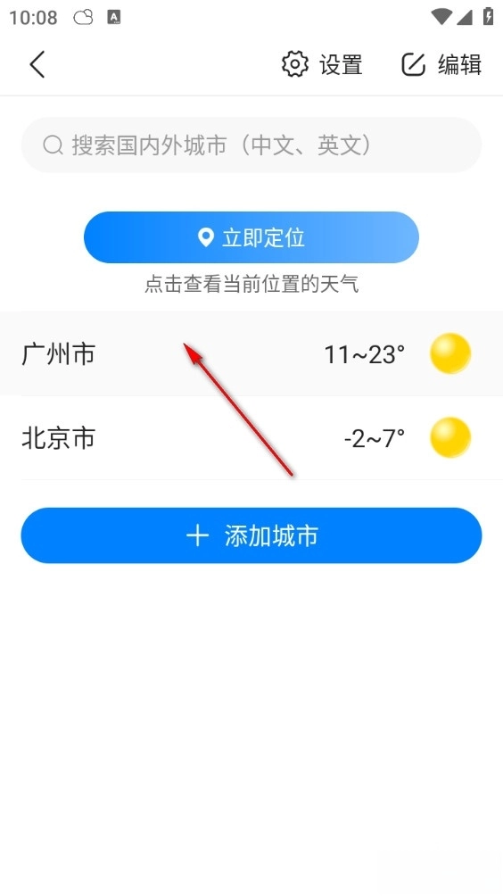 2、点击添加城市