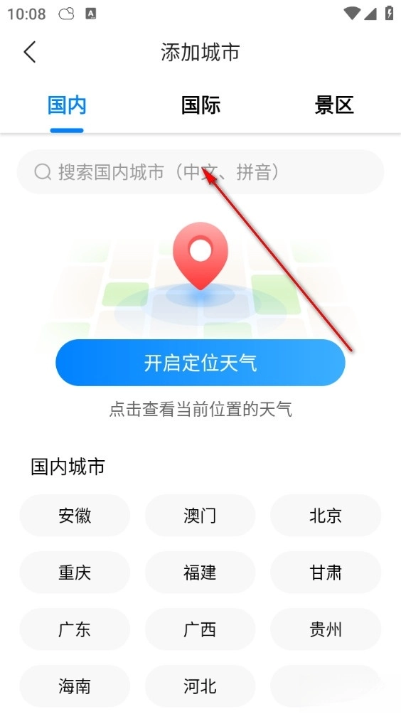 3、再搜索想要添加的城市