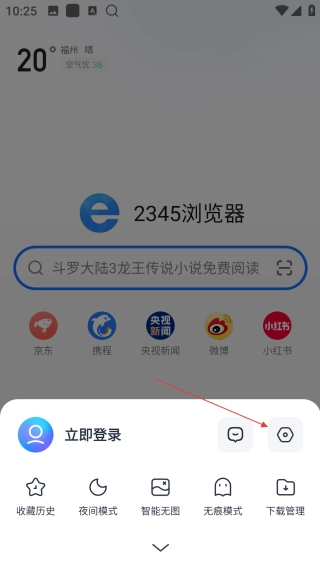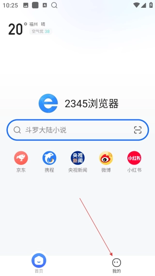 1、打开2345浏览器首页,找到底部的【我的】按钮并点击,即可进入个人中心页面。