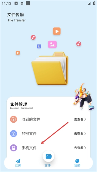 1、在文件传输界面,点击底部的【文件】选项,即可进入文件管理页面。