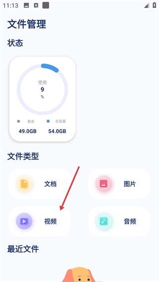 3、在文件分类界面中选择【视频】类别,即可进入手机内部存储的视频文件列表页面。