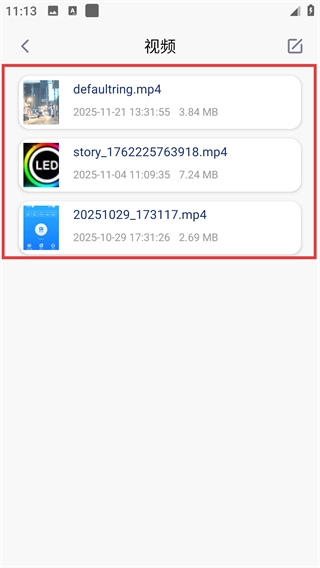 4、在视频列表页面能够查看已存储的视频文件,并且支持对这些文件进行传输、查看等后续操作。