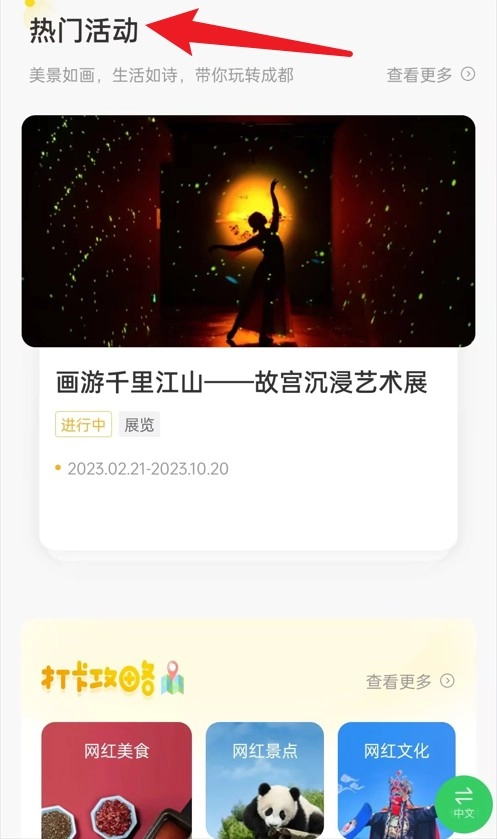 2、热门活动板块整合本地展览展会资讯,及时推送最新文旅娱乐动态。