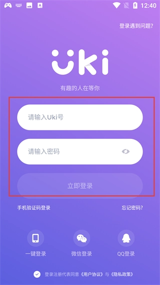 3、若选择密码登录方式,需先在【请输入Uki号】输入框中填写账号,接着在【请输入密码】输入框中填写对应的密码,完成后点击【立即登录】按钮即可尝试登录。