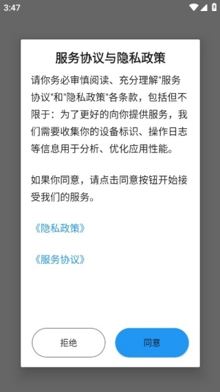 1、首次使用时,需阅读并同意服务协议和隐私政策,同时完成平台授权。