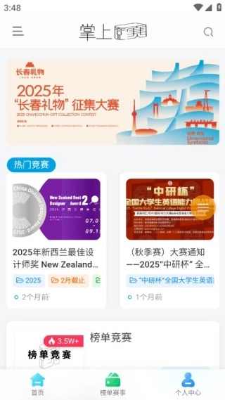 2、首页会实时更新各类竞赛信息,用户可以在线报名,也能查询赛事详情。