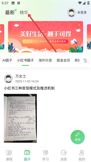 进入圈子板块后,点击【精华】标签,就能看到经过筛选的优质帖子内容。
